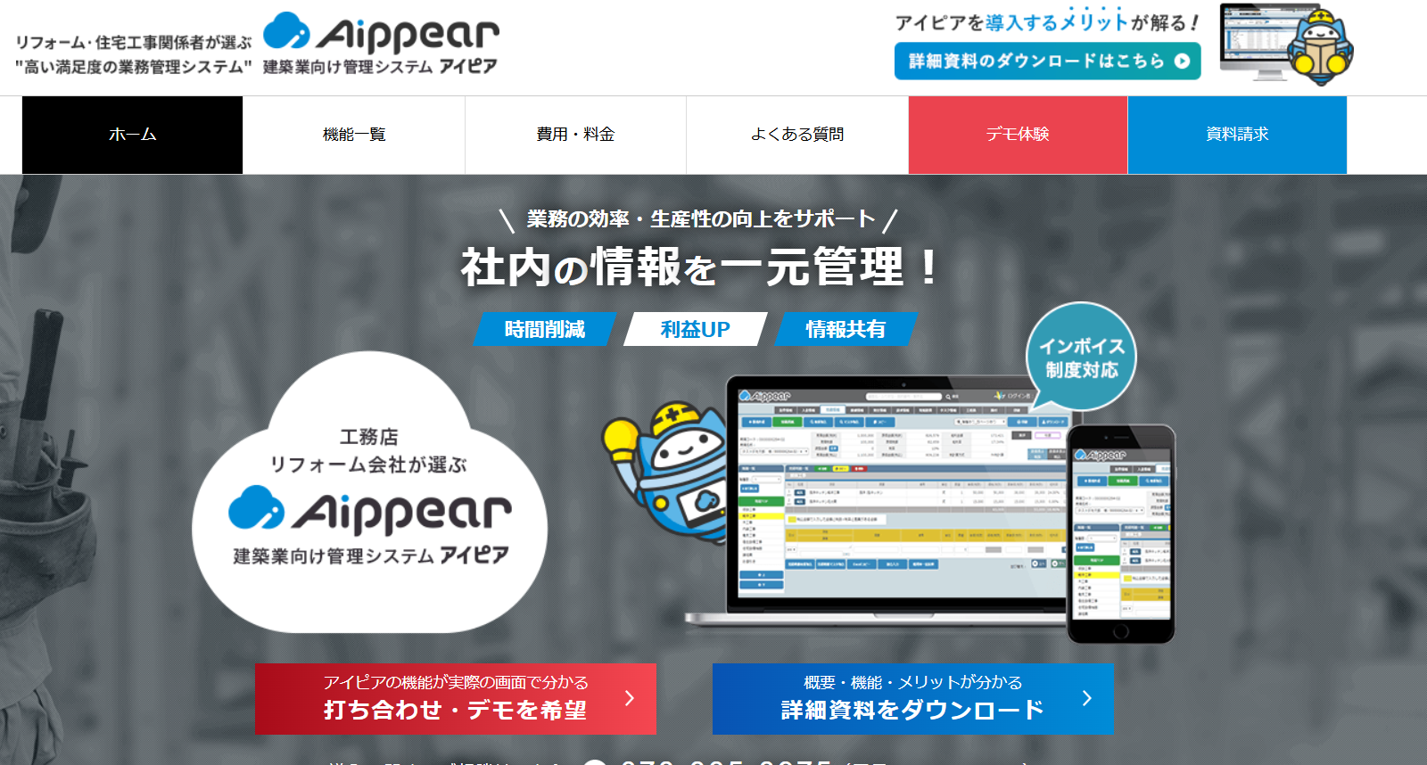 - 短期工事、リフォーム・設備工事・保守メンテナンスなど“現場仕事”業種に特化したオールインワン業務支援SaaS。