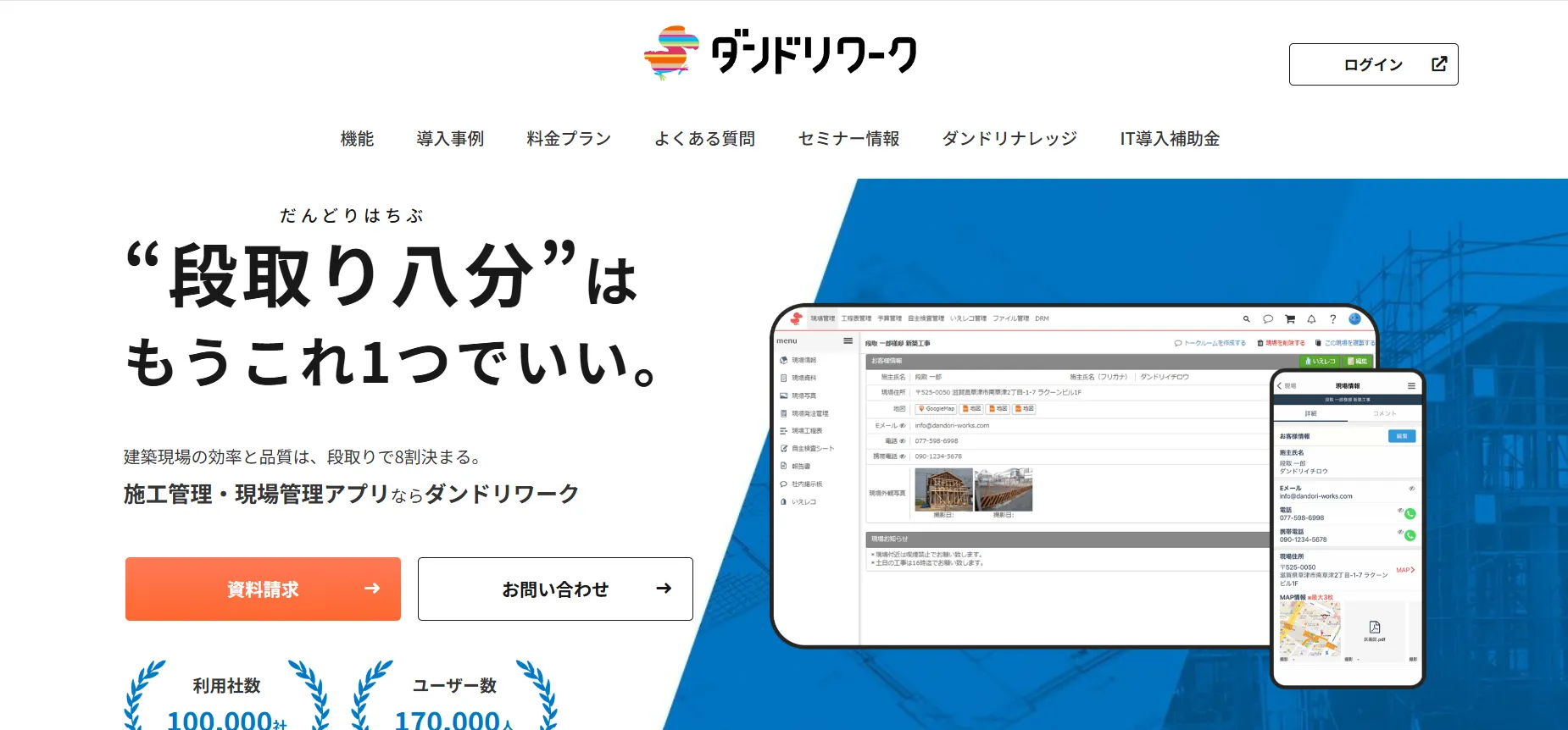 ダンドリワークは、現場管理機能に特化した施工管理クラウドとして、写真や図面への直接書き込み機能など、現場コミュニケーションを円滑にする工夫が盛り込まれている点が特徴です。