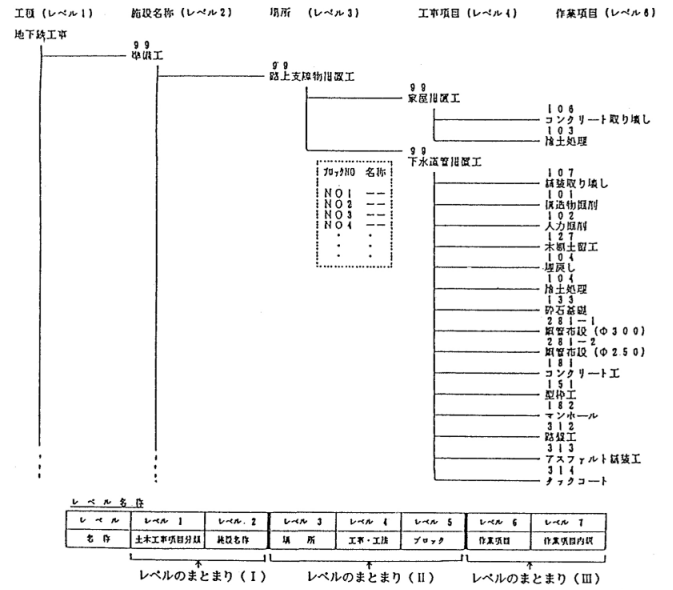 レベル⑤は、その工事・工法を構成する「ブロック」です。