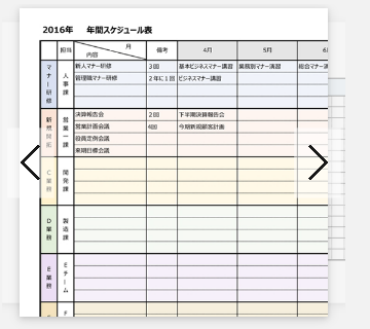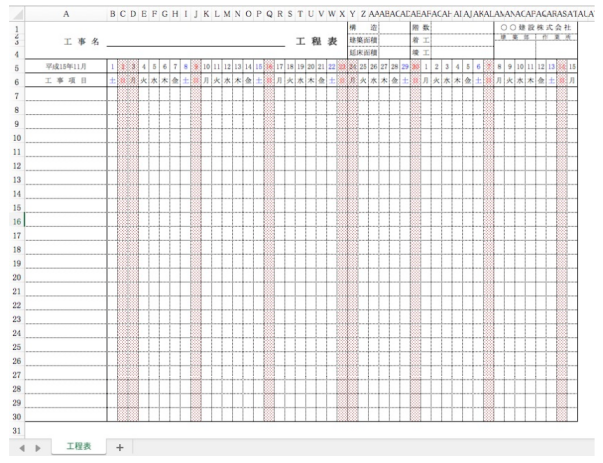 工程表ではなく「行程管理表」となっており、日付管理はできますが、工事作業記載に特化したものではありません。工程表以外のオールラウンドの使い方に対応します。