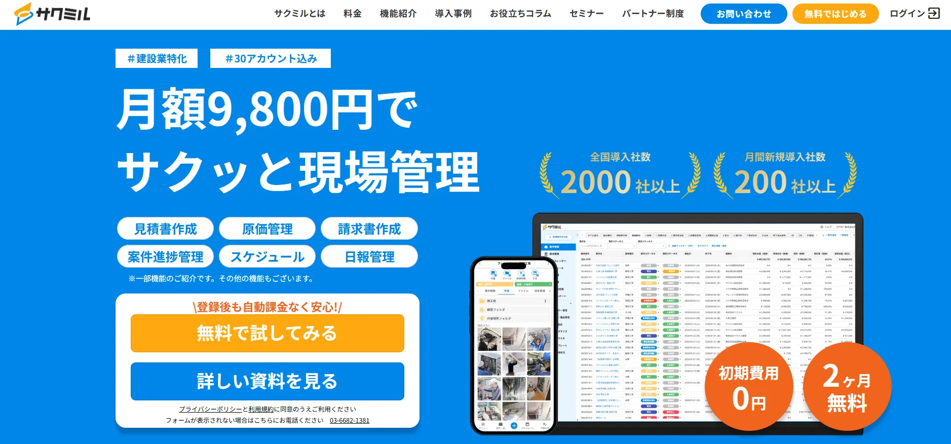 そして、特に30名以下の建設会社・内装工事事業者向けには、「サクミル」の導入もおすすめします。