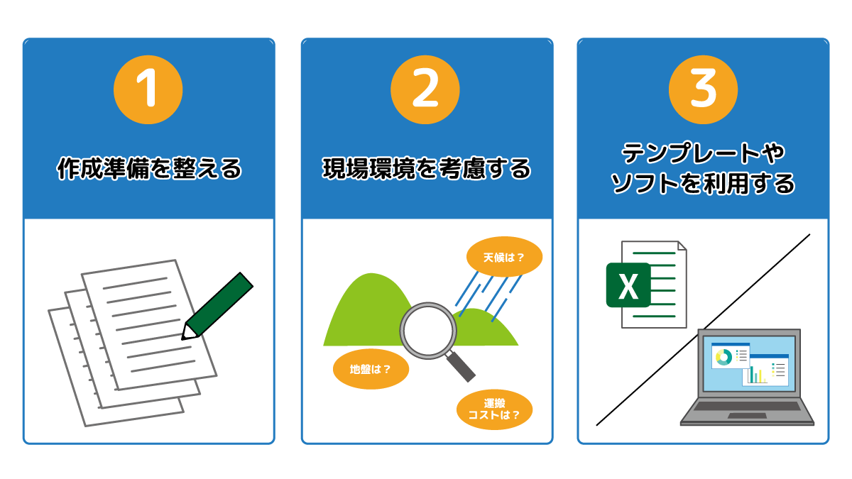 本記事では、積算業務の基本から具体的な作成方法や注意点について詳しく解説しました。