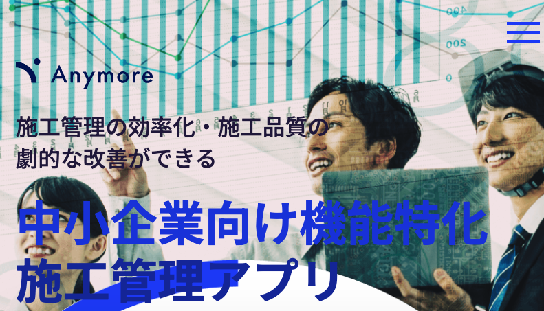 Anymore(エニーモア)は、LINEと連携して使える施工管理アプリです。現場で使い慣れたLINEから、施工予定の確認や報告、資料の送信までをスムーズに行えるしくみが魅力です。