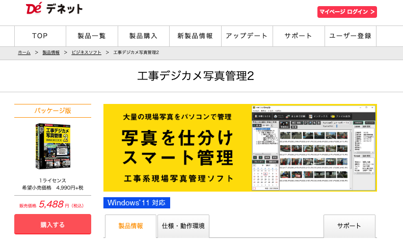 工事デジカメ写真管理2:https://www.de-net.com/products/kojiphoto_management2/